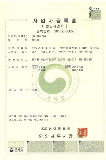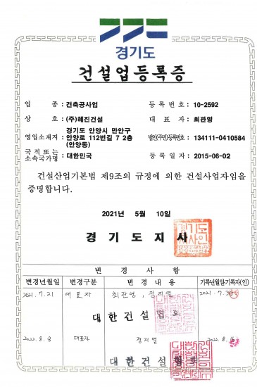 (주)혜진건설 | 사업자등록번호 : 610-86-33656 | 소재지 : 경기도 안양시 만안구 안양로 112번길 7, 2층